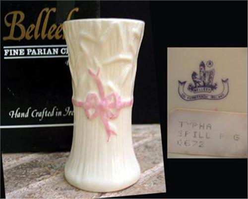 Belleek Typha Spill Vase Eighth Mark c1993 - 1996 no chips or cracks. Stands 4" tall. With original box