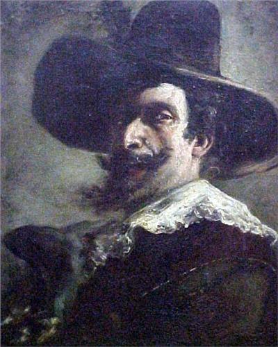 Bellini oil on canvas "Portrait of a Cavalier"; listed in Davenports; image measures 23 3/4" x 18"; framed with brass plaque on front; (overall crazing)