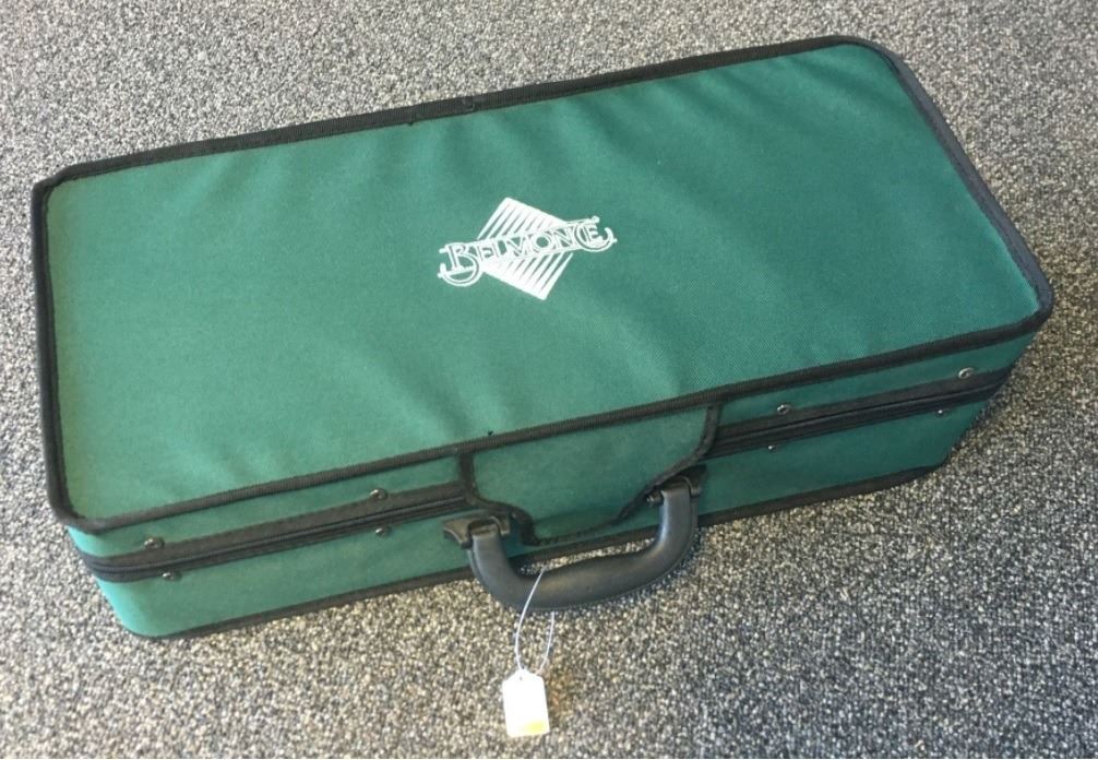 New trumpet case in a very nice green. The inside is plush blue.