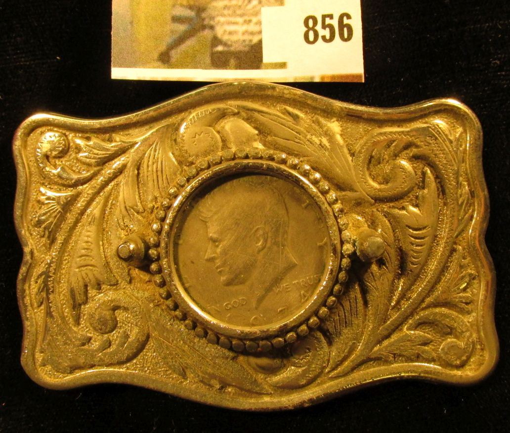 Belt Buckle containing a 1974 Kennedy Half Dollar.