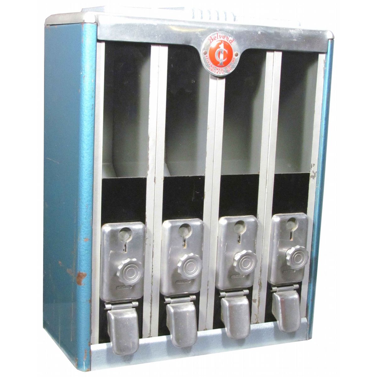 Belvend One Cent Bulk Vendor. Belvend Mfg. Co. Chicago, Il. All original working condition, comes with key. 14 1/2 X 19 X 7 inches.