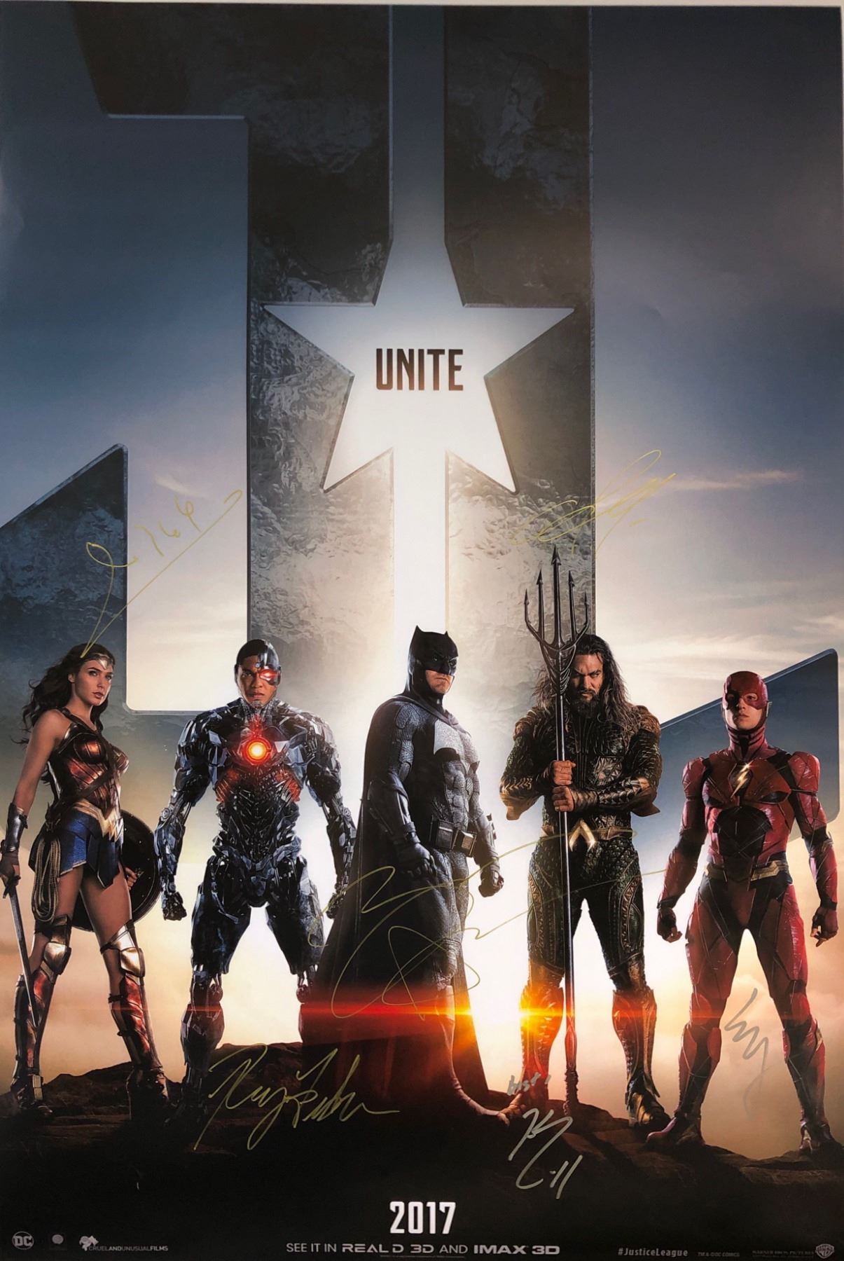 Autograph Includes: Ben Affleck, Gal Gadot, Jason Momoa, Henry Cavill, Ezra Miller, Ray Fisher