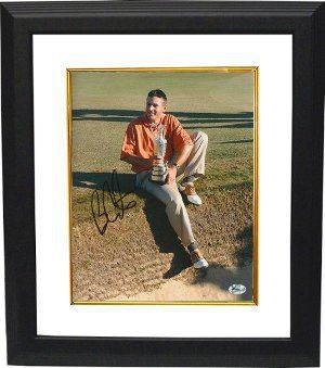 Ben Curtis is best known for winning the 2003 British Open. Ben Curtis has hand autographed this Golf 8x10 Photo. FI Hologram and Certificate of Authenticity from Athlon Sports. Custom White Mat and Black Color Framed as shown.