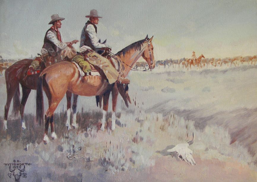 , Ben D. Tittsworth, , Oil on Board , 2 Cowboys , 12" x 16" , Signed Lower Left