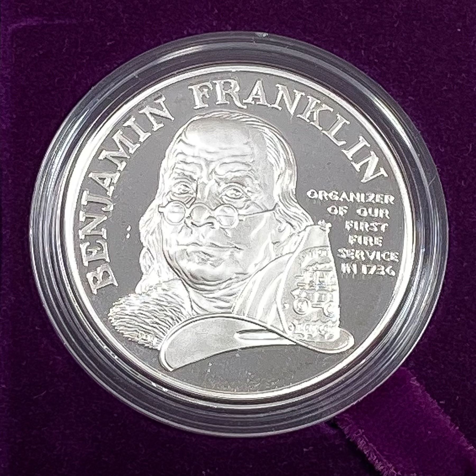 Ben Franklin Firefighters Proof Silver Medal