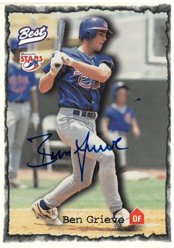 Ben Grieve won the 1998 American League Rookie of the Year award while playing for the Oakland Athletics. Ben Grieve has hand autographed this Huntsville Stars 1997 Best Cards Baseball Card. Certificate of Authenticity from Athlon Sports Collectibles.