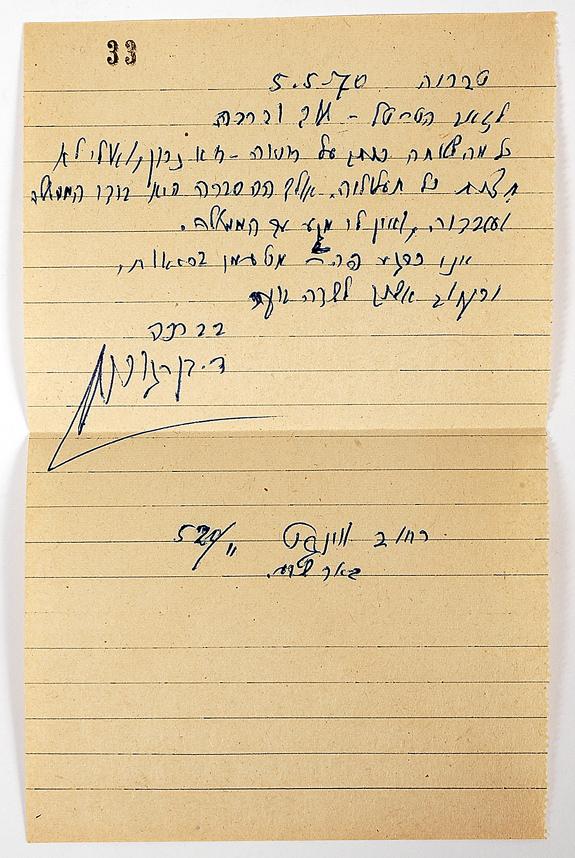 From the personal collection of P.Z. Hartal. Copies of the correspondence offered here between Ben-Gurion and Mr. Hartal are in the Ben-Gurion Archives in Israel.