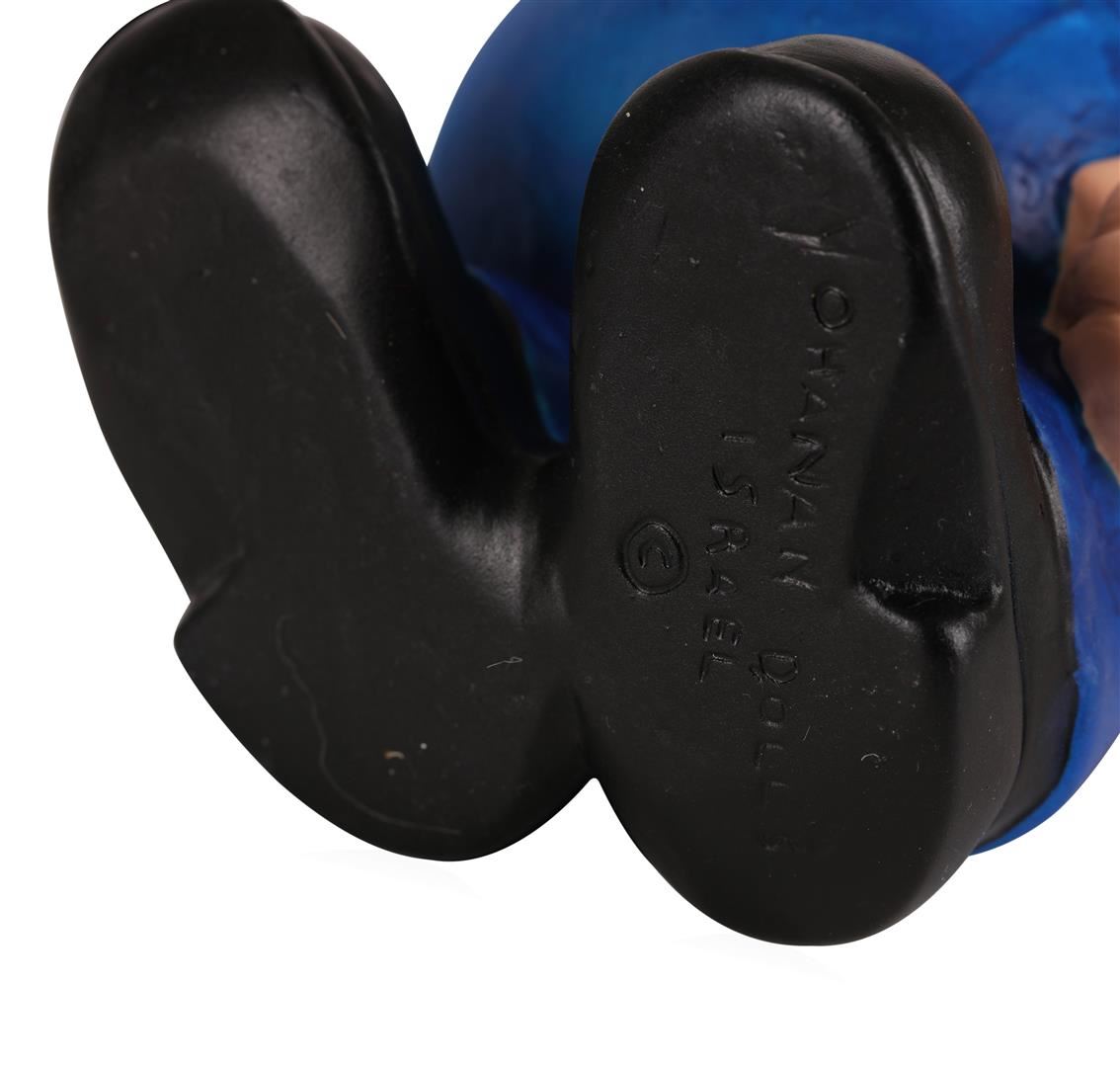 This is a rare plastic doll of the Jewish leader and first prime minister of Israel: David Ben-Gurion. He is featured wearing denim and a white shirt. This rare and hard to find doll was produced by the Yohanan Dolls factory . As you can see in the pictures, the doll can stand on its head as Ben-Gurion used to do as part of his exercises, a fact which is part of folklore associated with his personality. The doll in excellent condition for its age (look at the pictures). The doll is signed: Yohanan Dolls and Israel. Size: Height: 21 cm (8.27 inch) Width: 14.5 cm (5.70 inch).