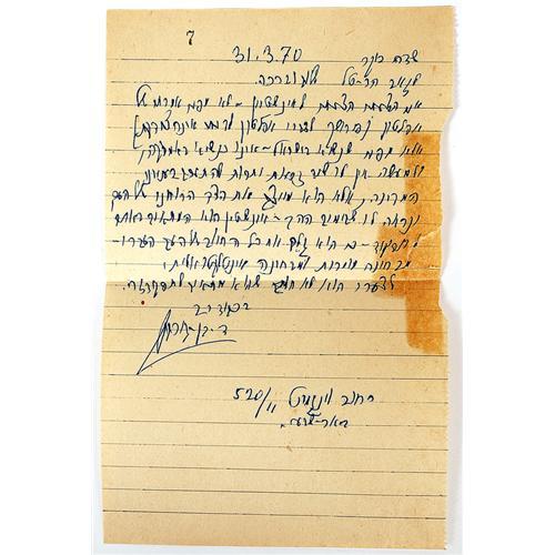 <Our item number 138143><B>Ben-Gurion, David.</B> Autograph letter signed ("D. Ben-Gurion"), 1p, 8½x4¾ in., in Hebrew, on ruled, light tan paper with a printed "7" at the top, Sdeh Boker, 31 March 1970. To P.Z. Hartal, veteran of the Six Day War, artist, poet, and author of "The Brush and the Compass" and "Toldot HaAdrichalut" (A History of Architecture). Fine. Accompanied by English translations of Ben-Gurion's letter and of Mr. Hartal 's letter to him.<BR><BR>Ben-Gurion writes: "I suggested proposals to Einstein--not because of Plato's statement (and your interpretation of Plato's utterance in my opinion is not justified) but because president in Israel--is unlike the president of the United States, and practically he has no rights and freedom to interfere with the affairs of the state, but he represents the spiritual side of the people and it seems to me that in those days--Einstein was the most appropriate for the ro le--because he exemplified all the positive qualities of the Hebrew people in the moral sense and the intellectual sense. To my regret he did not think that he was suitable for this roleā¦."<BR><BR>In 1952, Einstein, who was Jewish but not a citizen of Israel, declined an invitation to become Israel's second president. In this letter, Ben -Gurion is responding to an inquiry by Mr. Hartal as to whether the offer to Einstein was made based on Plato's statement that the state should be ruled by philosophers and offering a different interpretation of what Plato might have meant by the word "philosopher." <BR>Estimated Value $2,500 - 3,500. <I><BR>From the personal collection of P.Z. Hartal. Copies of the correspondence offered here between Ben-Gurion and Mr. Hartal are in the Ben-Gurion Archives in Israel.</I> <BR><BR>Our item number 138143<BR><IMAGES><P ALIGN="CENTER"><IMG SRC="http://www.goldbergcoins.net/liveauction/49jpegs/138143.jpg"> </P></IMAGES>
