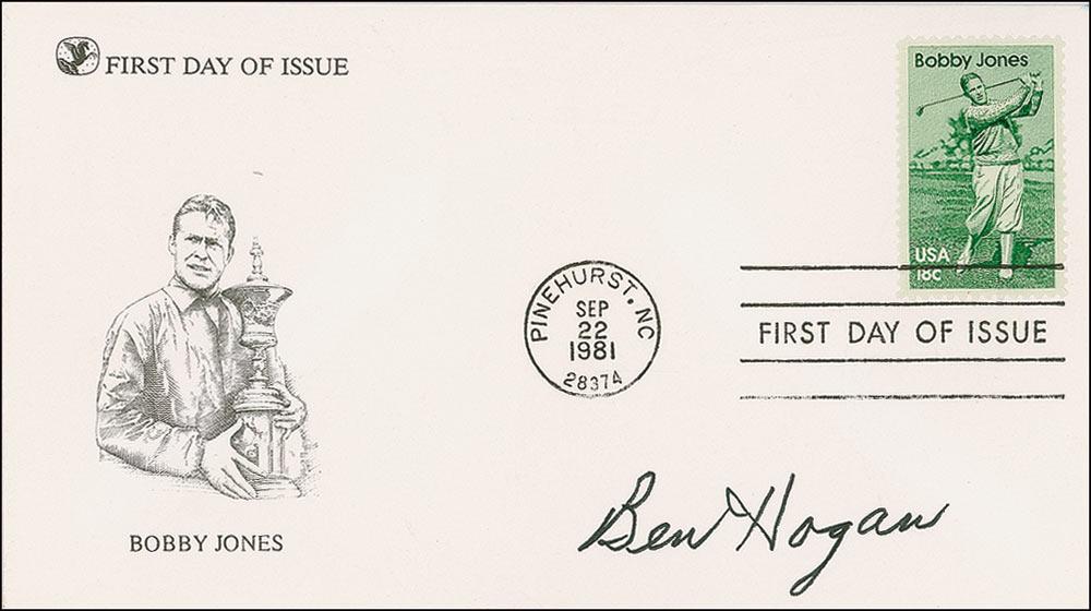 FDC with a cachet honoring Bobby Jones, signed in black felt tip. In very fine condition.
