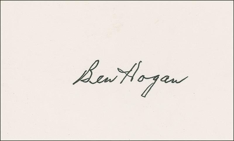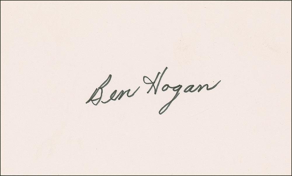 Two felt tip signatures, “Ben Hogan,” on individual off-white 5 x 3 cards. In very fine condition.