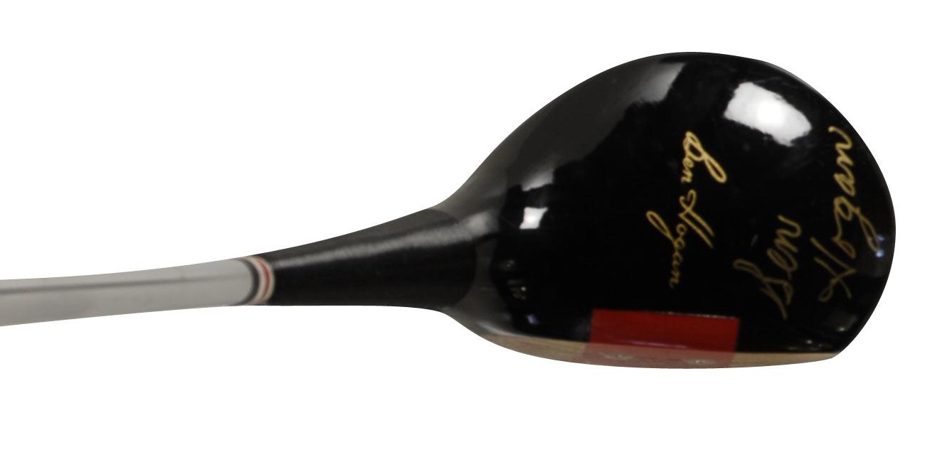 Ben Hogan model left-handed 3 wood signed in gold ink on head by Hogan. In fine condition. Known for his influence on the golf swing theory and his legendary ball-striking ability, this is a unique artifact from the golf icon. Oversized.