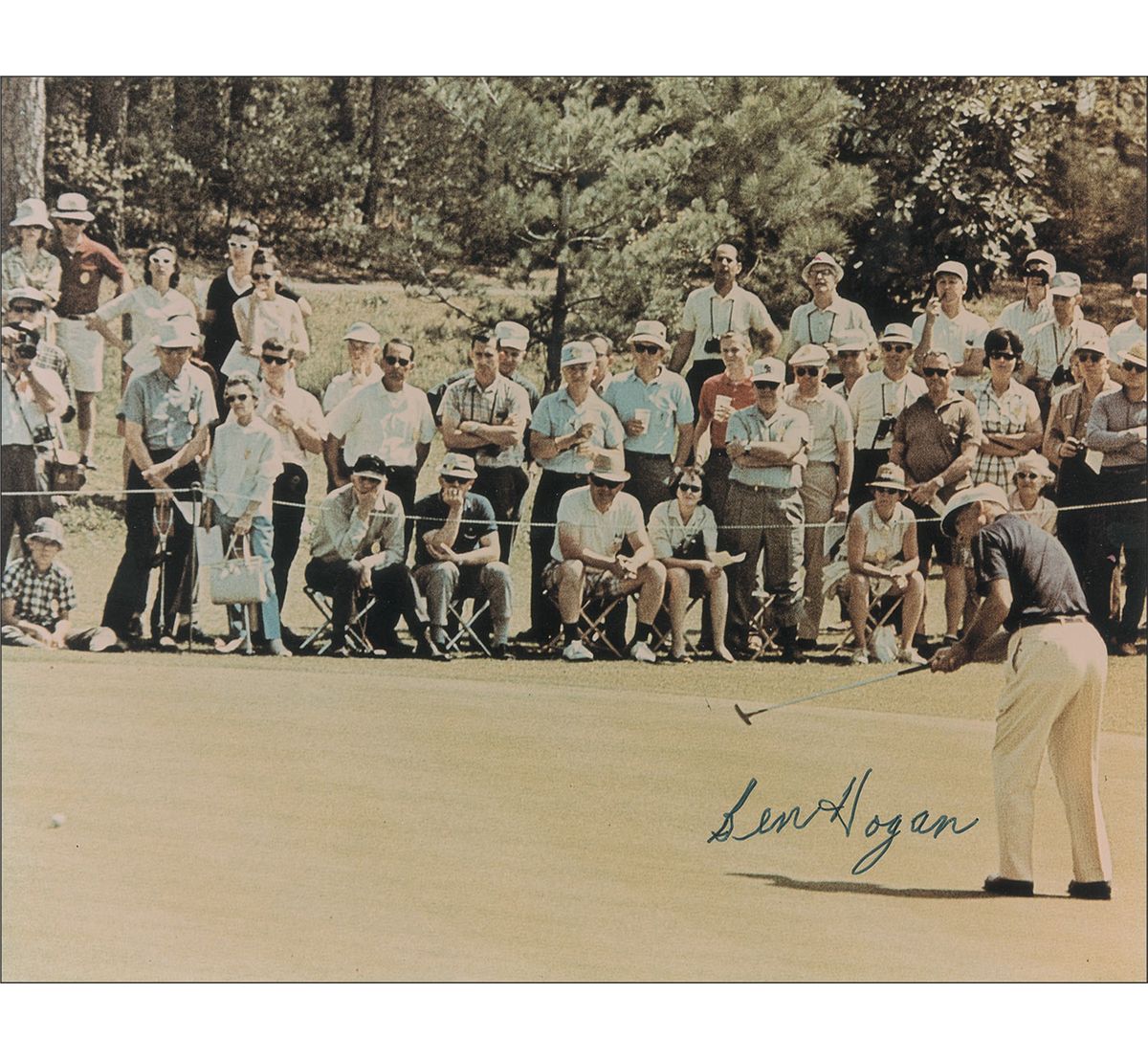 Color glossy 10 x 8 photo of Hogan on the putting green, signed in black felt tip. In fine condition.