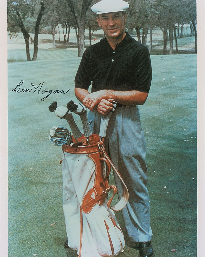 Color 8 x 10 photo of Hogan posing on a fairway, signed in black felt tip. In very fine condition.