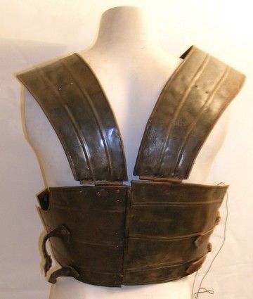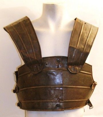 This is a full-size metal chest and back 'battle' armor piece from the 1959 epic adventure 'Ben Hur.' The prop is made from hand-forged tin or sheet metal with large bent metal 'shoulder harnesses' riveted to the front and back. The sides are fastenable with small leather straps. The armor is rusted and the foam lining has almost worn off completely as it likely saw a lot of battle during filming and spent a lot of time out in the elements. (measures approx. 18" tall, 16" across). Oversized item. Additional postage required. This collection of 'Ben Hur' memorabilia came from an estate in New Jersey with the original purchase dating back to the early 70's from the David Weisz  studios auction in Los Angeles.  This collector passed away and the 45 year old collection was sold recently at Berman's Auction Gallery.