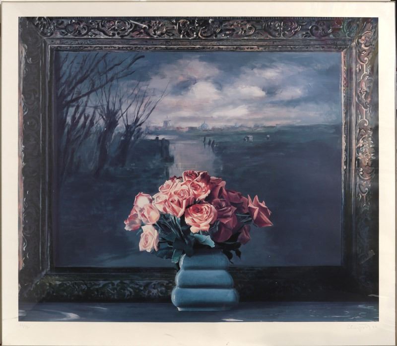 Ben Schonzeit, Roses with Dutch Landscape, Lithograph