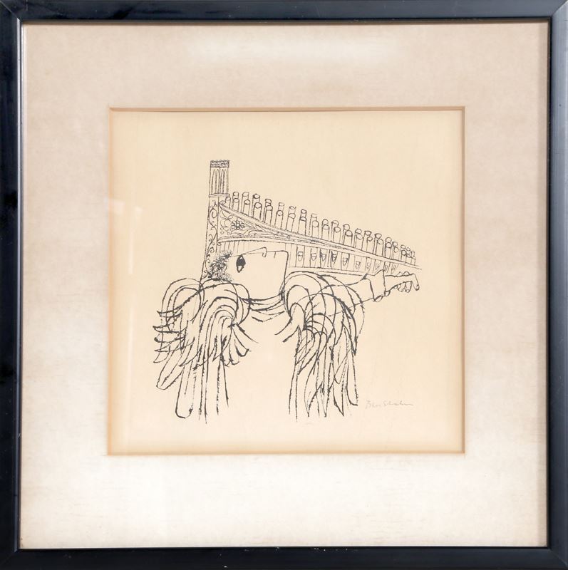 Ben Shahn, Angel Playing Organ, Lithograph