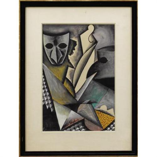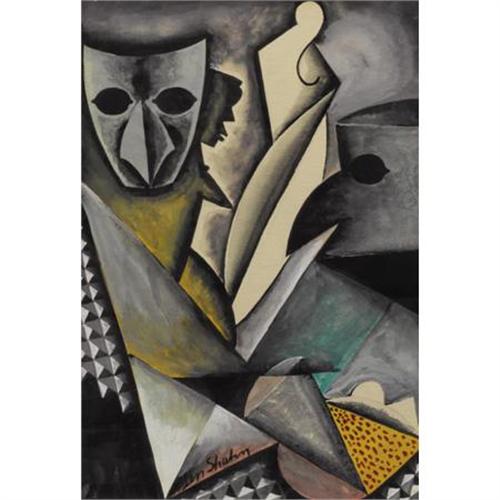 <B>BEN SHAHN </B></I>(American 1898-1969)<BR><I>Composition with Masks</B></I>, 1928<BR>Watercolor on paper<BR>20 x 14 inches (50.8 x 35.6 cm)<BR>Signed lower center: <I>Ben Shahn</B></I><BR> <BR>Provenance:<BR>Knoedler & Company, New York (label verso)<B>Condition Report:</B> Not examined outside of frame, but overall good condition<BR><BR><b>Shipping:</b> Requires 3rd Party Shipping (<a target="_blank" href="http://www.heritageauctions.com/common/shipping.php">view shipping information</a>)