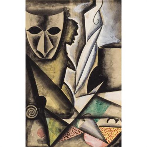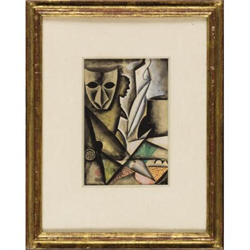 <B>BEN SHAHN (American, 1898-1969)</B></I><BR><I>Cubist Composition</B></I>, 1928<BR>Gouache and watercolor on paper <BR>8-1/4 x 5-1/2 inches (21.0 x 14.0 cm)<BR> <BR>PROVENANCE:<BR>Philip Van Doren Stern, gift from the artist;<BR>Raydon Gallery, New York.<BR><BR>EXHIBITED:<BR>The Union League Club, New York 1980.<BR><BR>This work is an unsigned preliminary study for a larger watercolor, <I>Composition with Masks, </B></I>1928, 20 x 14 inches signed Ben Shahn. That work was sold by Heritage on December 6-7, 2007, lot 23603.<B>Condition Report:</B> Paper slightly toned, but otherwise excellent condition.<BR><BR><b>Shipping:</b> Requires 3rd Party Shipping (<a target="_blank" href="http://www.heritageauctions.com/common/shipping.php">view shipping information</a>)