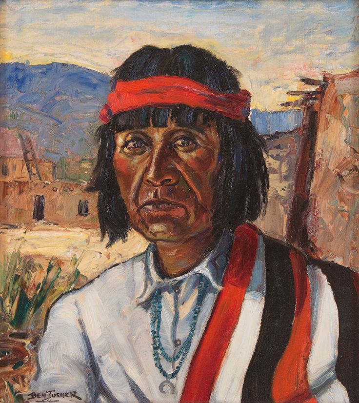 Ben Turner (1912-1966). Taos Indian. 20" x 18" oil on canvas. Signed lower left.