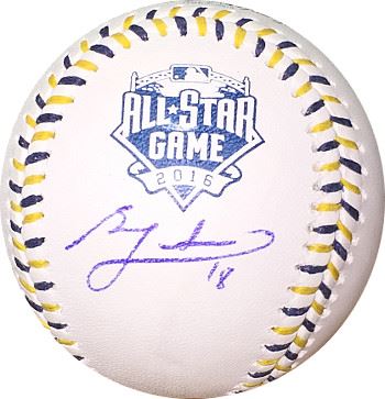 Ben Zobrist plays second base for the Chicago Cubs of Major League Baseball. He previously played for the Tampa Bay Rays, Oakland Athletics and Kansas City Royals. With the Royals, he won the 2015 World Series over the New York Mets. His nickname, Zorilla, was given to him by his manager Joe Maddon. Zobrist is a versatile defender and a switch-hitter with a high walk rate. As a defender he has played roughly half his innings at second base, but has also spent significant time at shortstop and in right field. Zobrist has been referred to as a "super utility player". Ben Zobrist has hand signed this Official 2016 All Star Baseball #18. Certificate of Authenticity from Athlon Sports Collectibles.