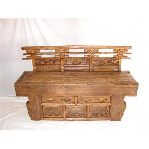 Solid construction from Elmwood. Cleaned and polished with bees wax. Great natural finish hoighliting heavy natural grain of wood.