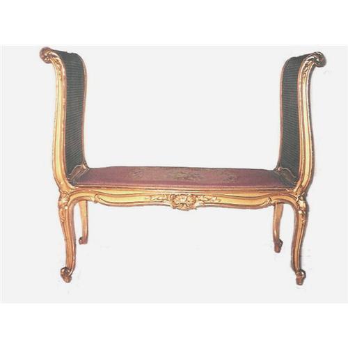 A Louis Phillip XV style Giltwood Bench with needlepoint seat, cane sides, late 19th / Early 20th century.