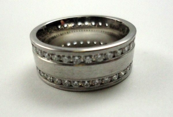 Never worn! From a jewelry store closure!Approx. 1.5ct total weight of diamonds. THIS RING CANNOT BE SIZED, diamonds go all the way around the band! This ring retails for $3500 to $4169.