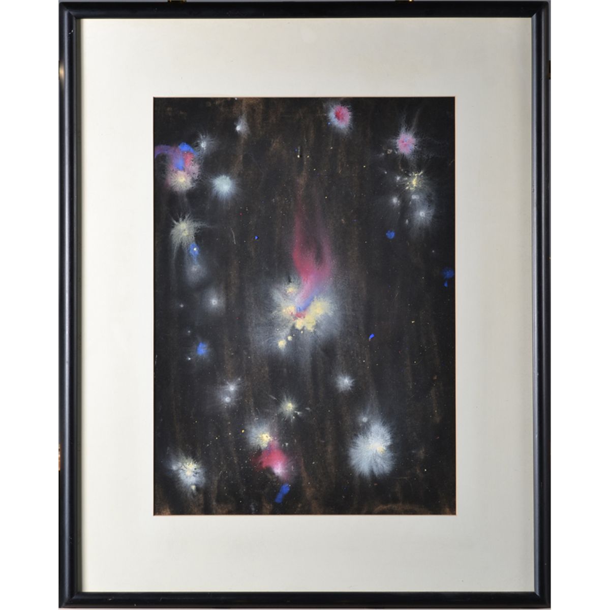Depicting what appears to be a fireworks exploding in the sky scene. 21.25" H x 15.75" W, sight, 31.5" H x 25.5" W, framed. Circa 20th century. Provenance: Private collection of the late Benedict Markowski, whom is also the artist, and a long time archivist of the Detroit Public Library.