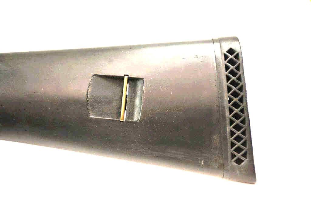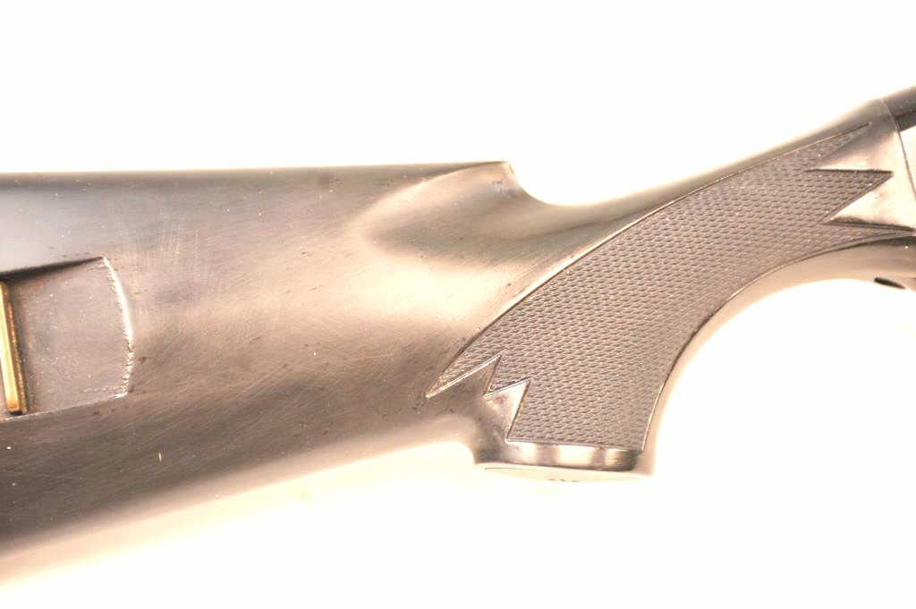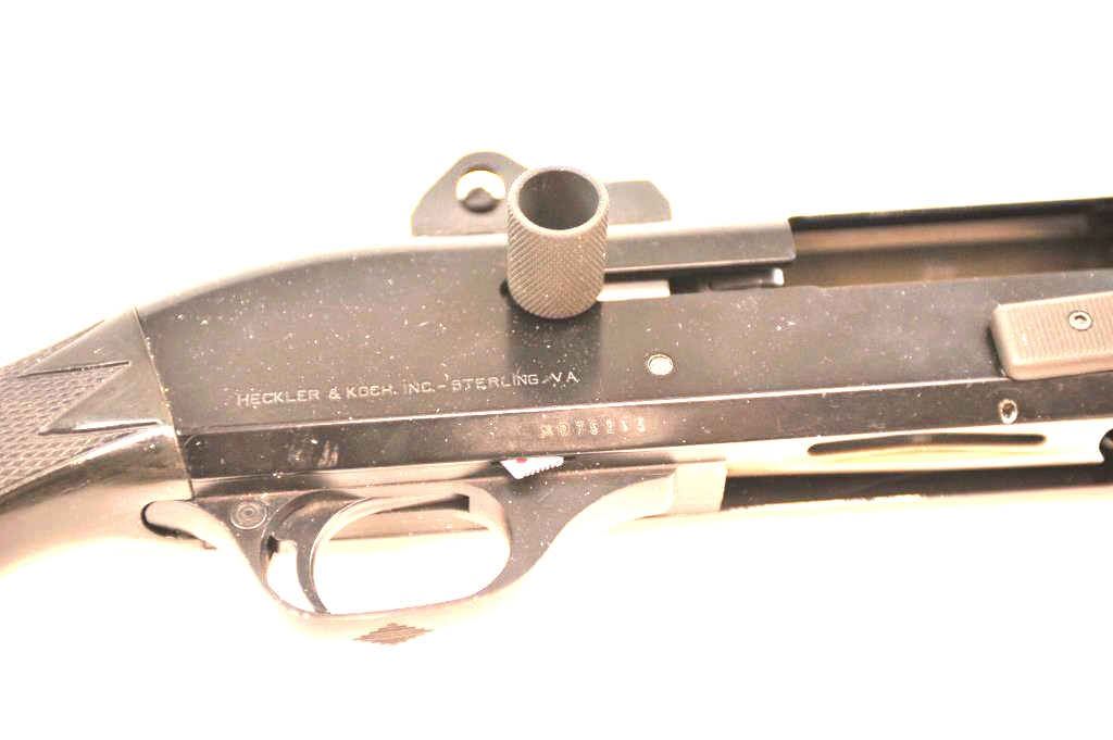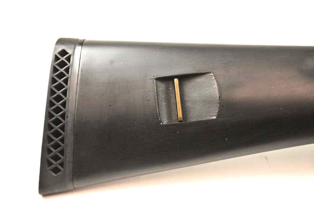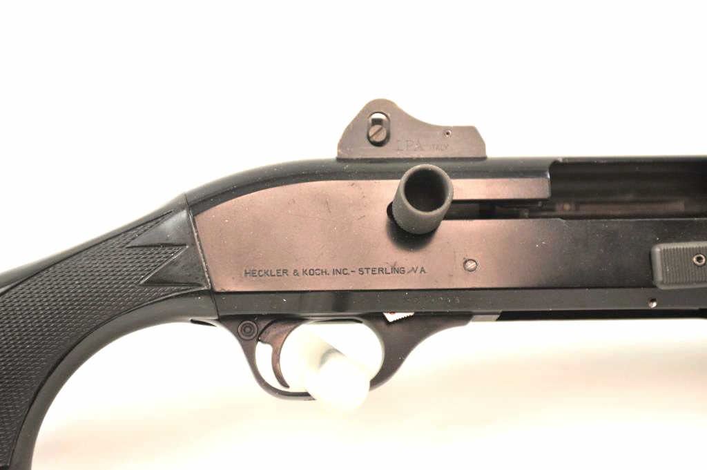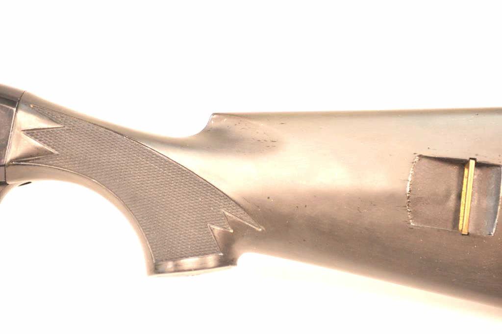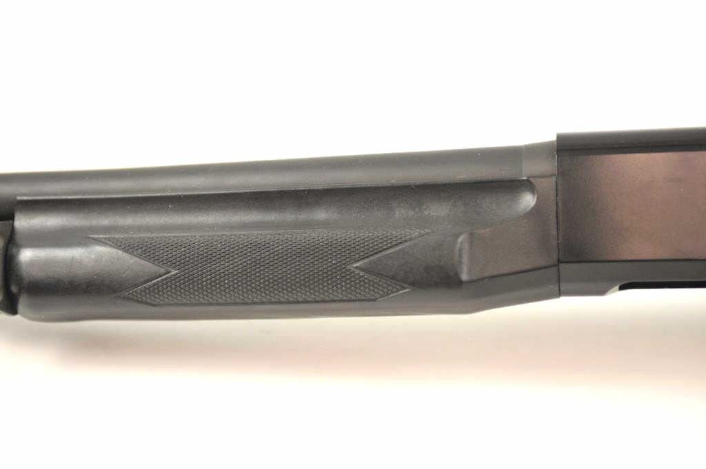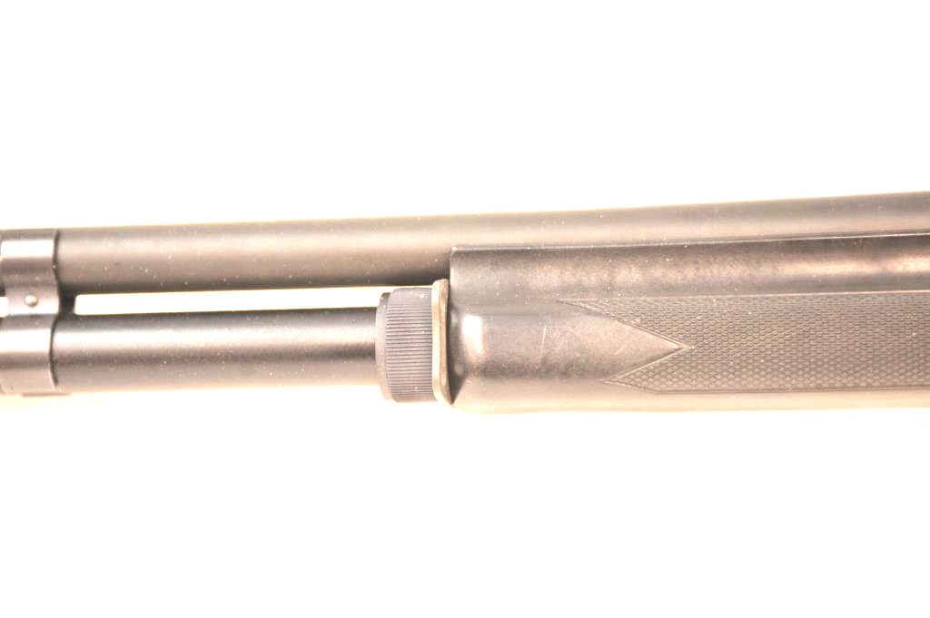 Benelli M1 Super 90 semi-automatic shotgun, 12 gauge, Serial #M075235. The shotgun is in fine overall condition with a 19” compensated barrel with a full-length extended magazine. The shotgun retainsnearly all of the matte blue finish with rifle sights. The synthetic stock is in very good condition and ends with a ventilated rubber recoil pad providing a 14 ¼” LOP. The bore is good, the action is crisp and themarkings are sharp on this desirable Benelli with a compensated barrel. Est.: $700-$1,400. (Modern).