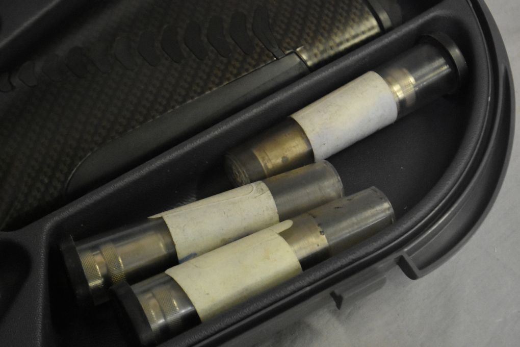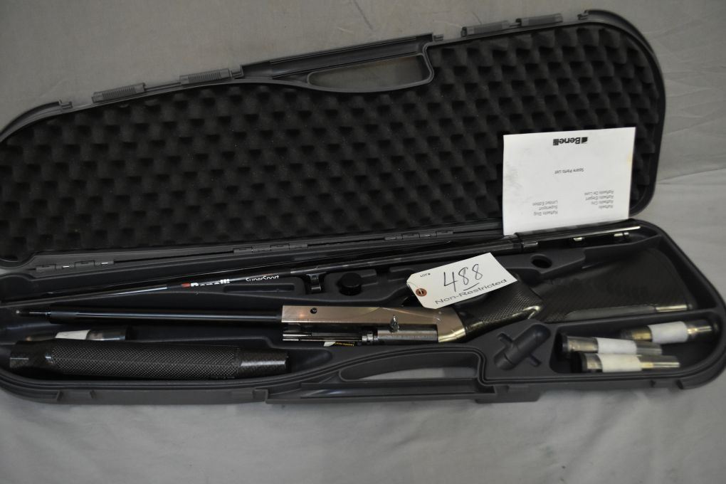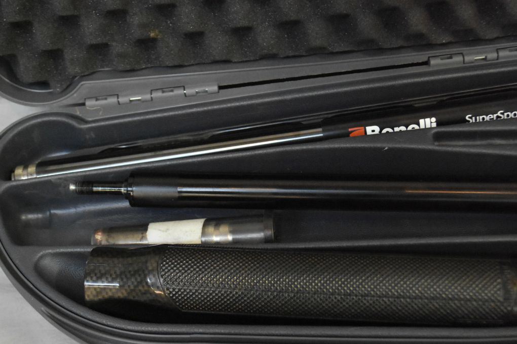 Benelli Model Super Sport .12 Ga 3" Semi Auto Shotgun w/ 28" vent rib ported bbl c/w five various chokes [ c/w original grey plastic Benelli case w/booklet, blued finish, satin finish receiver, Kelvar like pistol grip stock & forend, w/ recoil pad, choke tool appears to be missing ] Ser # F276851