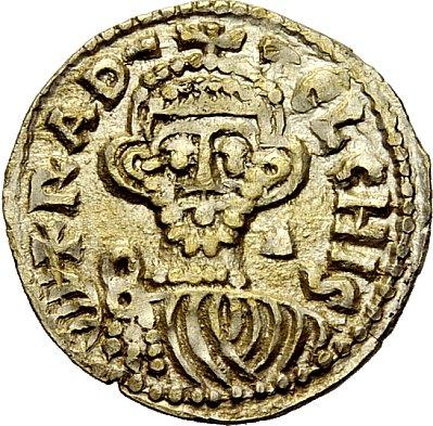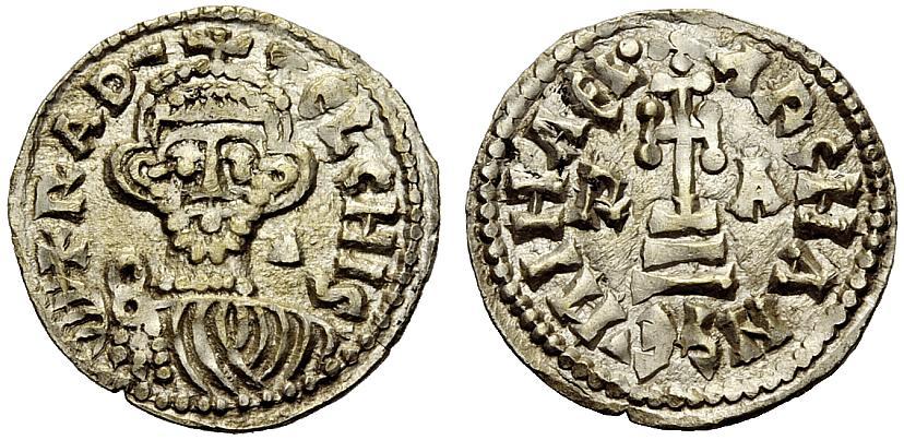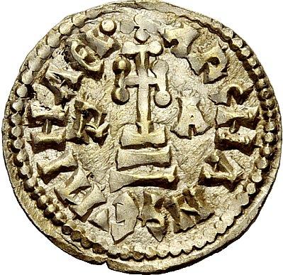 Benevento. Radelchi 839-851. Solido al tipo di Giustiniano II. EL 3,70g. RAD v w ELCHIS Busto diademato di fronte, con globo crucigero nella mano d. Rv. D ARCHANGE s MIHAEL• Croce potenziata su tre gradini; ail lati, R – A. CNI 3. Repertorio 441. Oddy –. MEC 1, –. Friedberg 1111. Rarissimo. q.Spl
