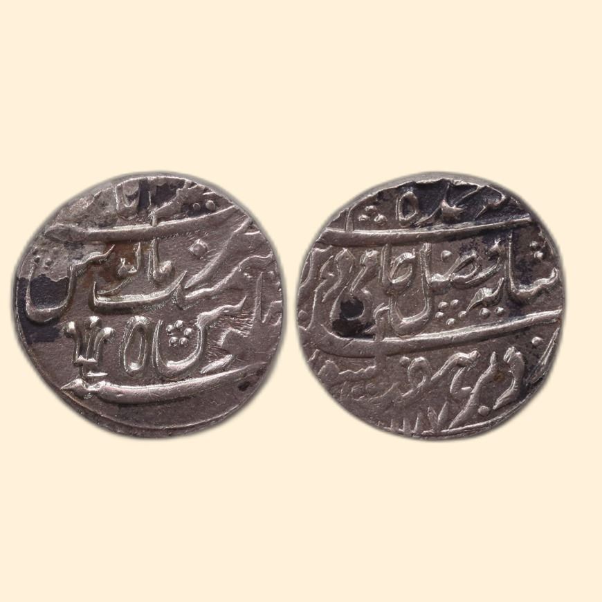 East India Company, Bengal Presidency, Azimabad Mint (Patna), Silver Rupee, 11.53gms, in the name of Shah Alam II, AH 1177, RY 5. Date unlisted in Stevens.