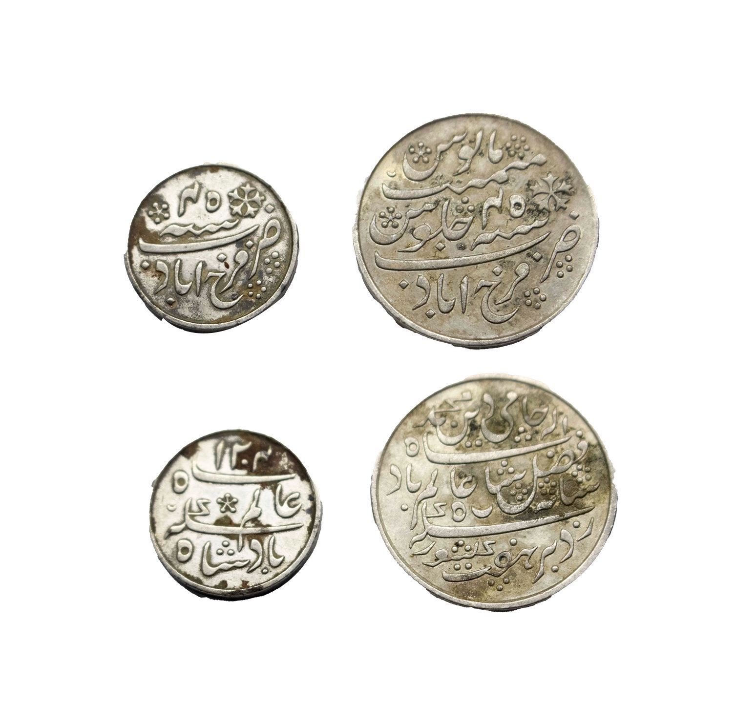 Bengal Presidency, Farrukhabad Mint, Silver Rupee & ¼ Rupee (2 ), in the name of Shah Alam II, RY 45, milled coinage.