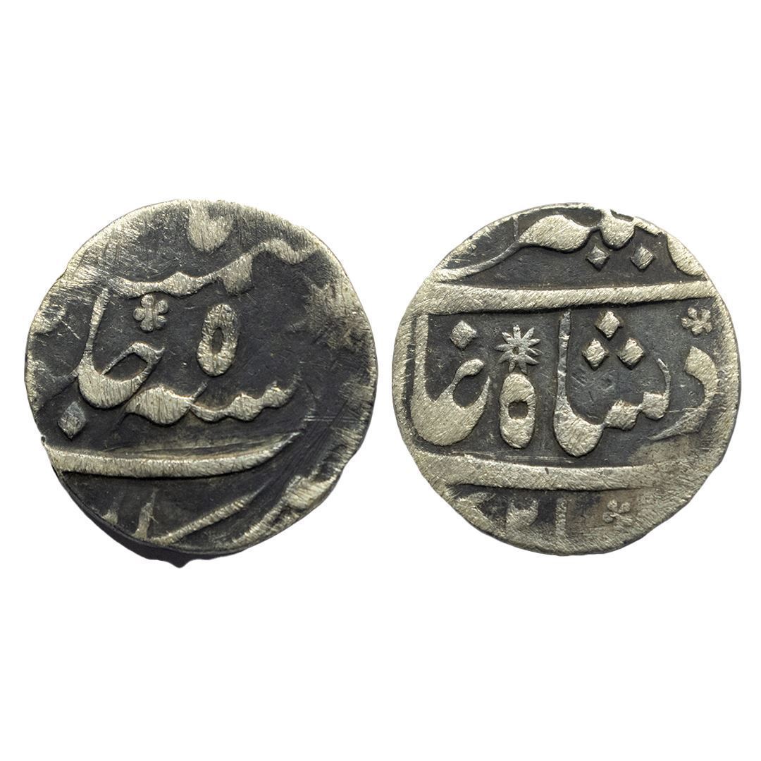 Bengal Presidency, Kalkatta Mint, Silver Rupee, 11.36g, in the name of Alamgir II, AH(11)72/RY 5, star symbol on obv. as a mint mark. (P. Stevens # 1.10). Fine. Extremely Rare. Earlier Alamgir II rupees mint name was Alinagar Kalkatta, after the British recaptured the city from the Nawab in January 1757 the mint-name was changed to Kalkatta only.