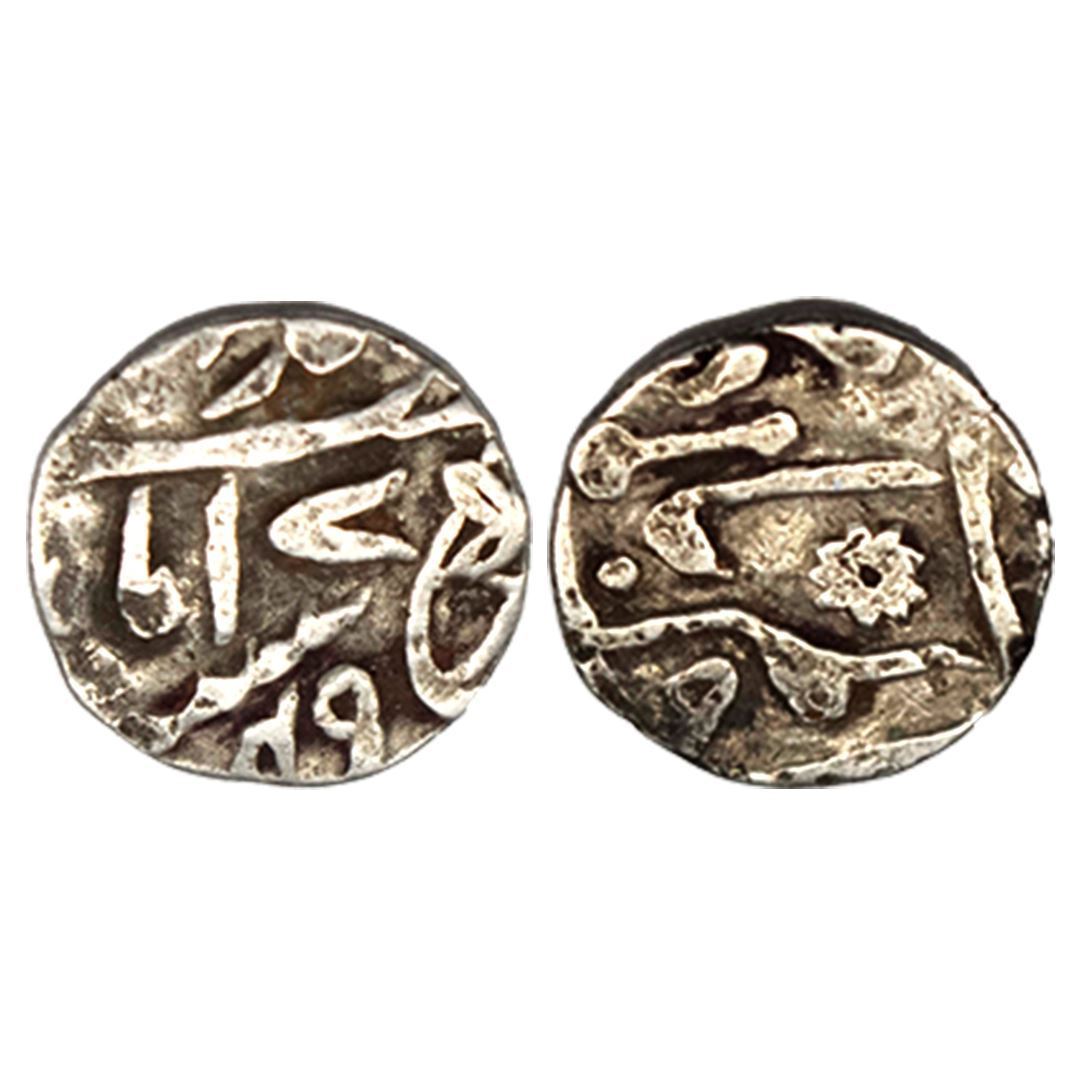 Bengal Presidency, Muhammadabad Banaras Mint, Silver 1/8 Rupee, 1.33, in the name of Shah Alam II, RY 49, sun-burst symbol on obv., Darogha mark on rev. (Stevens # 7.133). Extremely fine.