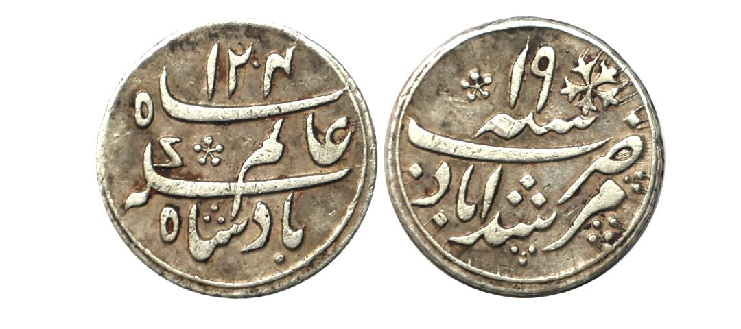 Bengal Presidency, Murshidabad attributed to Patna mint, silver ¼ rupee, in the name of Shah Alam II