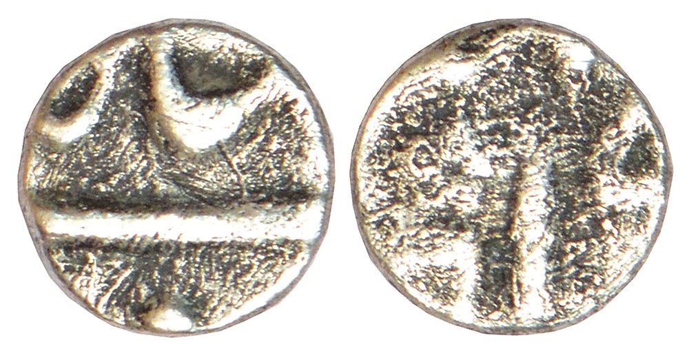 Bengal Presidency, Murshidabad mint (by style), silver 1/32 rupee, Mughal issue, in the name of Shah Alam II, RY 19, not listed in KM, 0.29g.