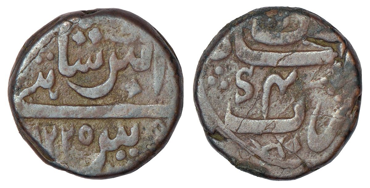 Bengal Presidency, Shahjahanabad mint, copper pice, in the name of Muhammad Akbar II, AH 1225/RY 4,