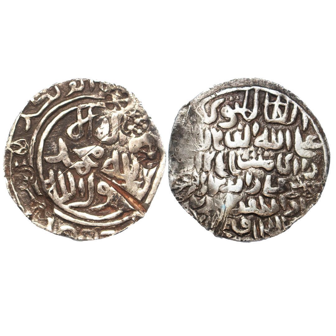 Bengal Sultanate, Ala al-din Husain Shah (AH 899-925 / 1493-1519 AD), Silver Tanka, 10.49grms, Mintless type, Al sultan al mutawakkil alallah al fath legend on obv., Shahada within double circle on rev. (G&G # B720).first victory coin. very fine