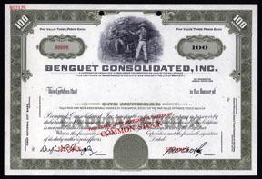 Philippines. 19xx (ca.1940-50'a), 100 shares. Olive border w/ mining vignette. ABNCo. Specimen, XF, Scarce Philippine mining bond.
