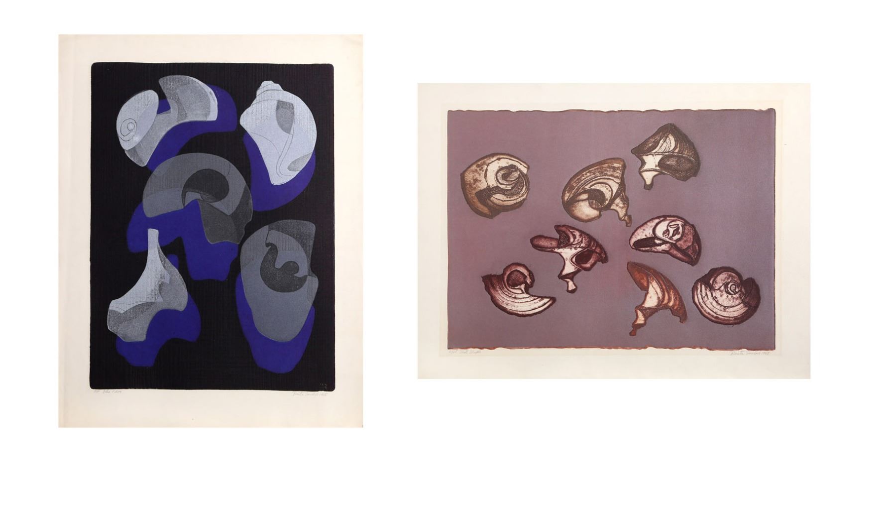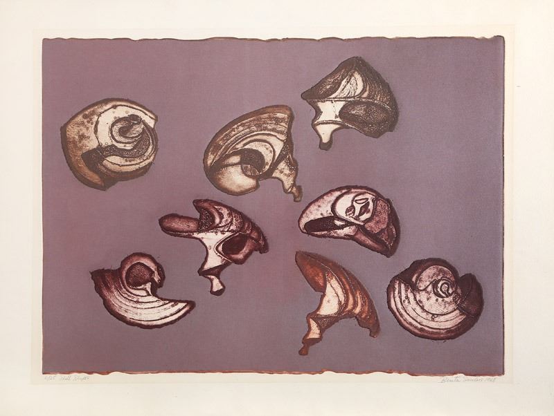 Benita Sanders, Blue Echoes and Shell Shapes, Lot of 2 Etchings