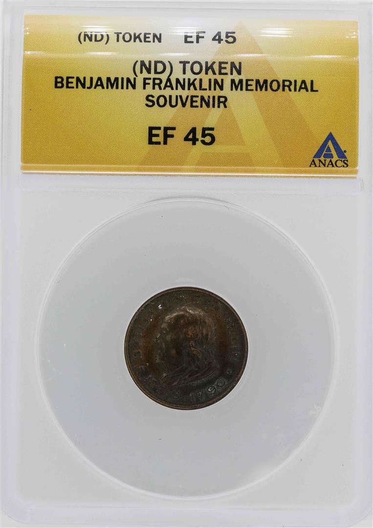 One Benjamin Franklin Souvenir Token ANACS XF45. ANACS Certified.