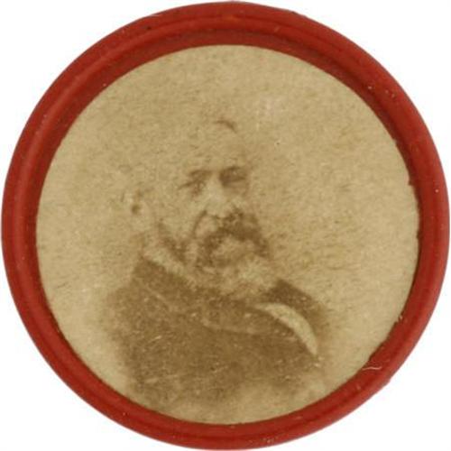 <B>Benjamin Harrison Campaign Stud.</B></I> Harrison's portrait sits in a red celluloid stud. The photo is in good condition with no visible markings or blemishes. It measures 17mm across and is a nice example of a colored stud in a world of brass and metal. <BR><BR><b>Shipping:</b> Miscellaneous Collectibles, Smal (<a target="_blank" href="http://www.heritageauctions.com/common/shipping.php">view shipping information</a>)