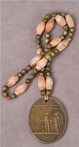 Benjamin Harrison Peace Medal. 17 ½” long. Bone and brass bead necklace. Fine condition. (est $500-800).