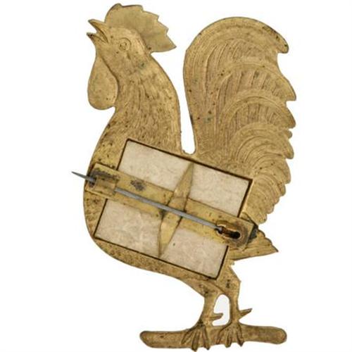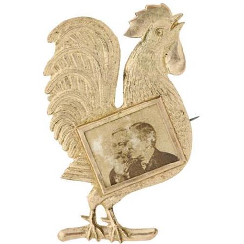 <B>Benjamin Harrison and Levi Morton Jugate Presidential Campaign Rooster,</B></I> 1 x 2 , bright brass, with a photograph of Harrison and Levi in the center. The photo is a bit weak else very fine.<BR><BR><b>Shipping:</b> Miscellaneous Collectibles, Smal (<a target="_blank" href="http://www.heritageauctions.com/common/shipping.php">view shipping information</a>)