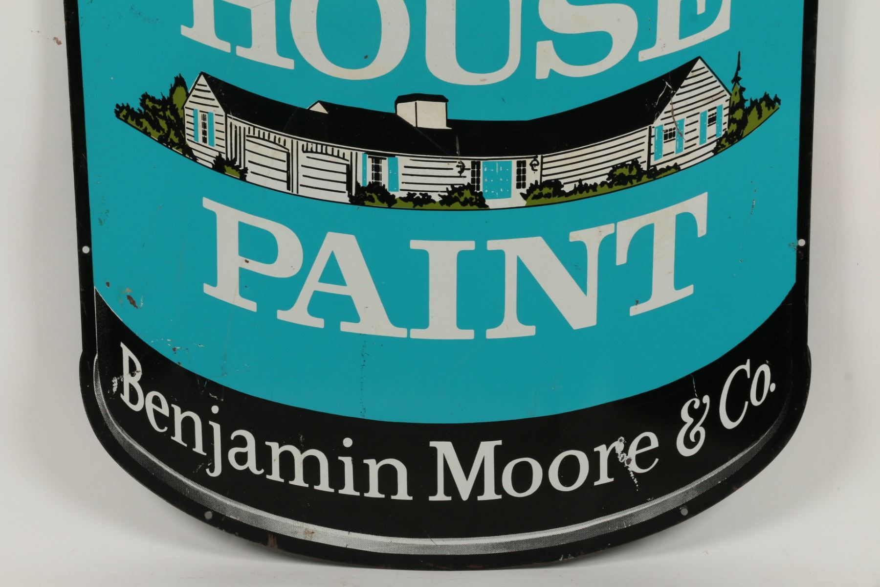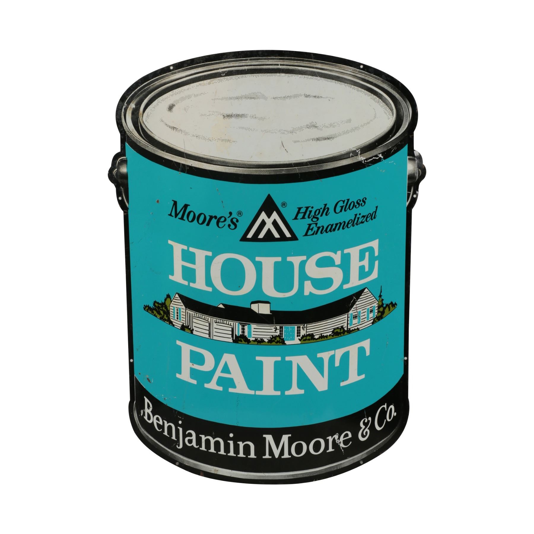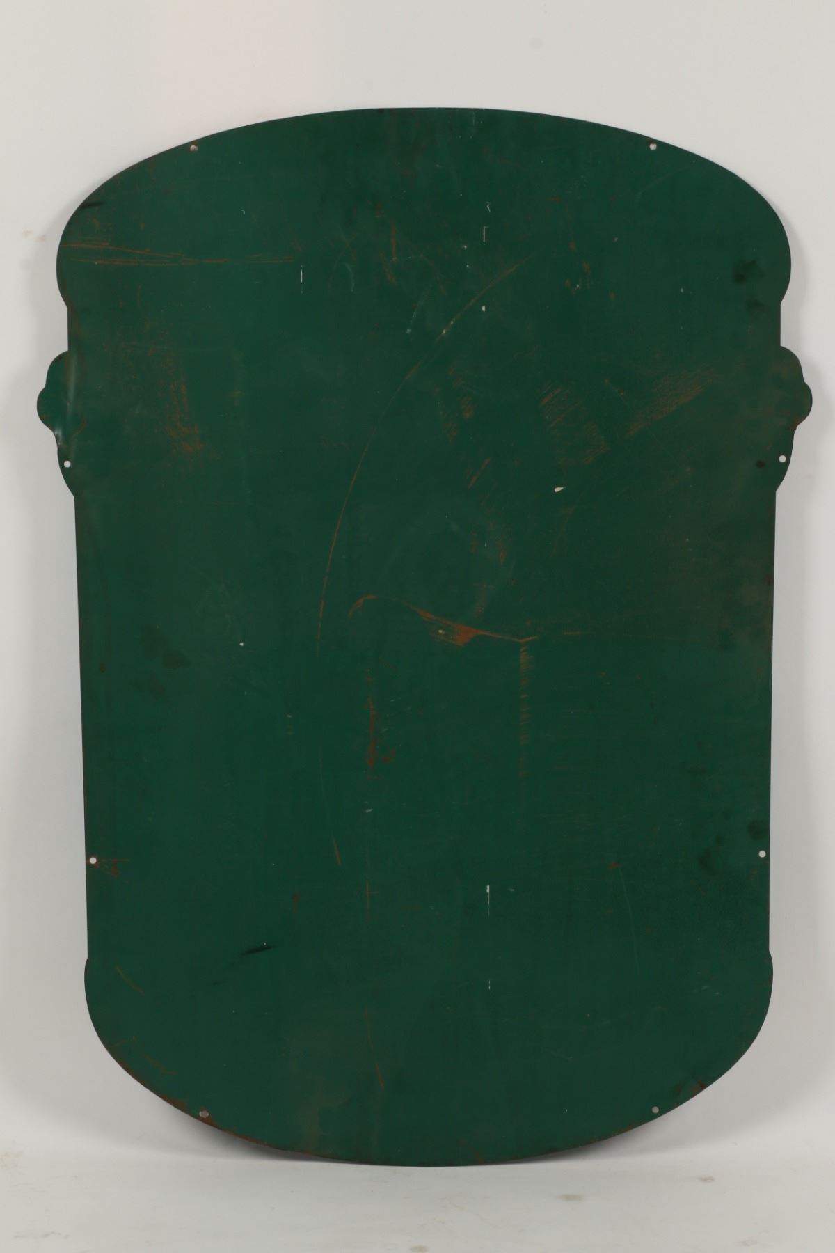 Canadian. Circa 1950. Die-cut heavy lithographed metal. 25" x 35". Minor bends, creases. Scattered surface scratches. $200-300.