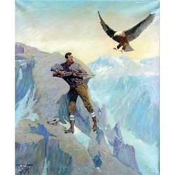 Benjamin Dewey Titsworth (1940-197?) (Colorado Springs, Colorado). Oil on Board. Hunter & Eagle. 1948. Damaged - Paint Flaking in 3 Corners. 28" x 24". Framed. Estimate $100 - $300.