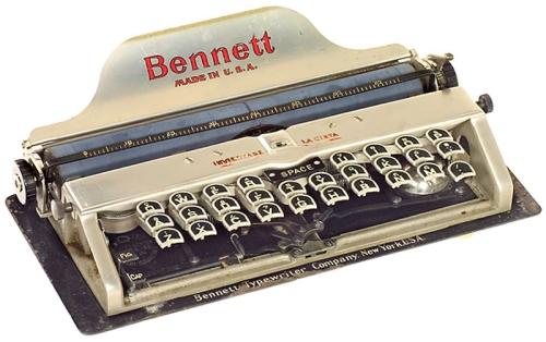 Bennett, 1907 Amerikanische Typenradschreibmaschine, passend für die Rocktasche. Blockiert. – Literatur: Martin, 1949, S. 217. Small pocket-size American typewheel machine Blocks at the moment. – (3/4) – € 90/130 – (180/1)