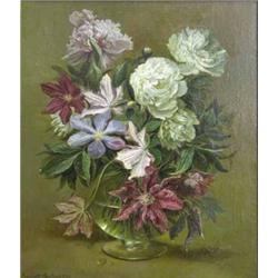 Bennett Oates (1928-) oil on canvas, Mixed Summer Flowers in a glass bowl, signed and dated 1971, 24 x 20 ins. £1,200-1,500